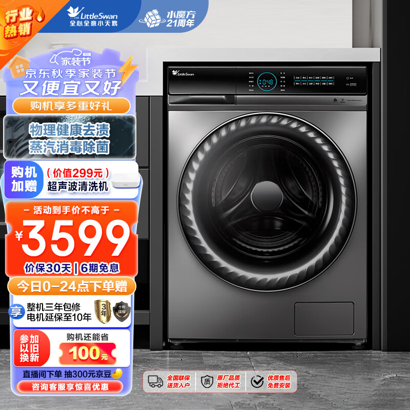 小天鹅(LittleSwan)滚筒洗衣机全自动 超微净泡水魔方 物理去渍 智能投放 超薄10公斤 TG100V88WMUIADY5价格:3599.00元!