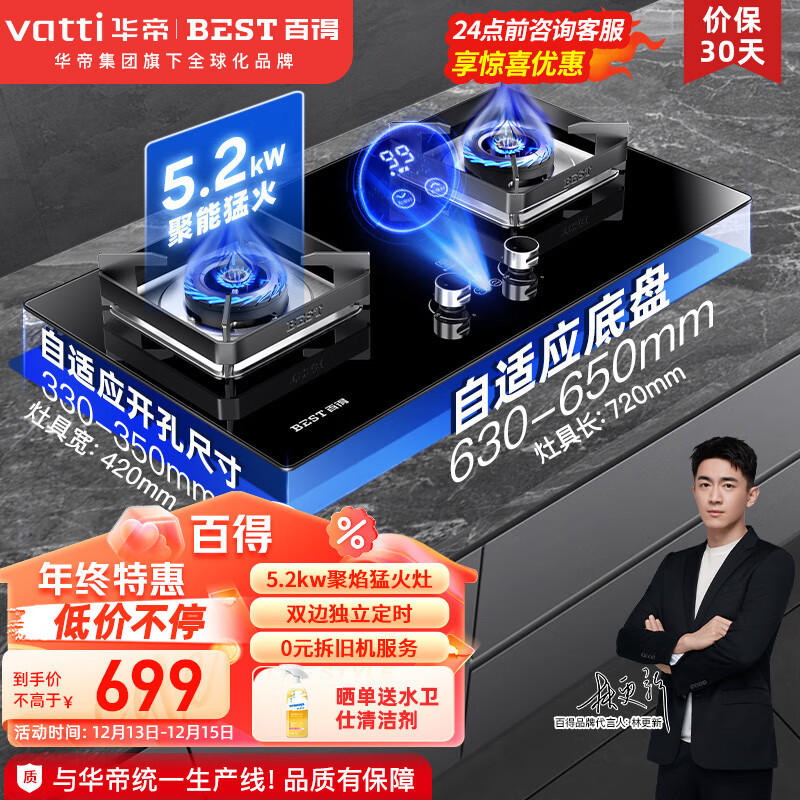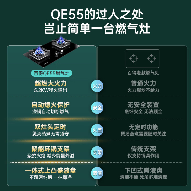百得(BEST)华帝出品 燃气灶 煤气灶双灶 5.2KW超燃大火力天然气灶具 台式嵌入式两用 智能定时灶 JZT-QE55价格:799.00元!