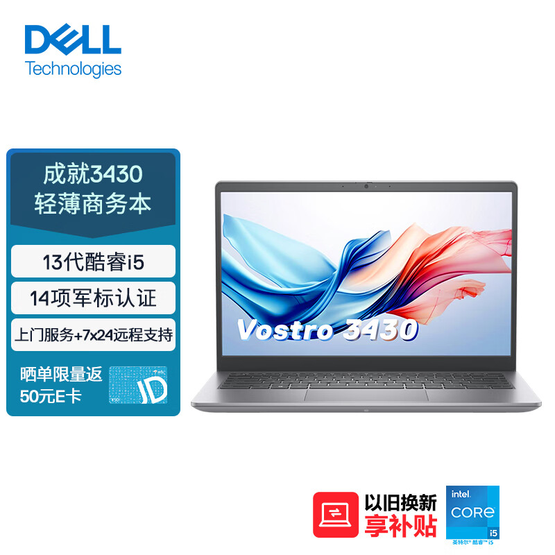 戴尔(DELL)笔记本电脑 成就Vos14-Air 14英寸性能商务办公轻薄本(13代酷睿i5 16G 512G)灰价格:3999.00元!