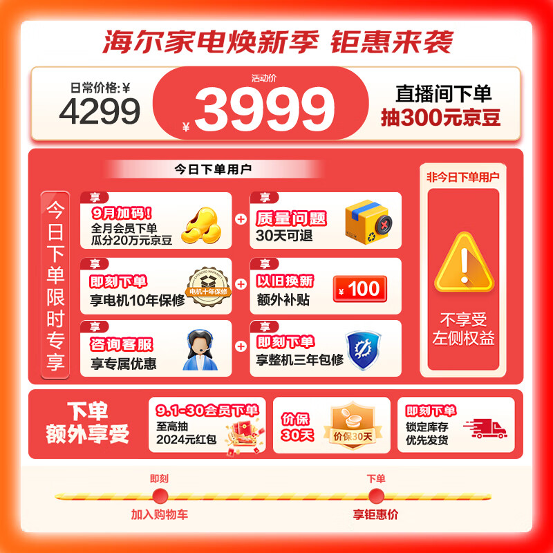 海尔(Haier)云溪波轮洗衣机全自动家用【净界R1·SE】10公斤 后控平嵌 精华洗 双动力防缠绕XQS100-BZ566TH价格:3999.00元!