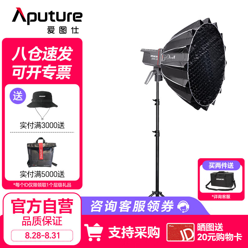 爱图仕(Aputure)艾蒙拉200x s直播补光灯200W影棚视频录像可变色温绿幕背景LED摄影灯 200x S Dome III柔光套装价格:3648.00元!