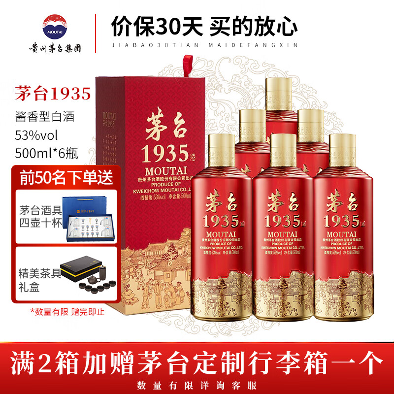 茅台(MOUTAI) 贵州茅台酒 酱香型白酒 高端婚宴 茅台1935【中秋送礼】 53度 500mL 6瓶 原箱价格:7128.00元!