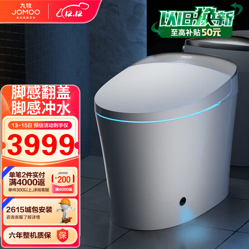 九牧(JOMOO)智能马桶一体机脚感自动翻盖抗菌除臭智能坐便器ZS700X 305坑距价格:4299.00元!