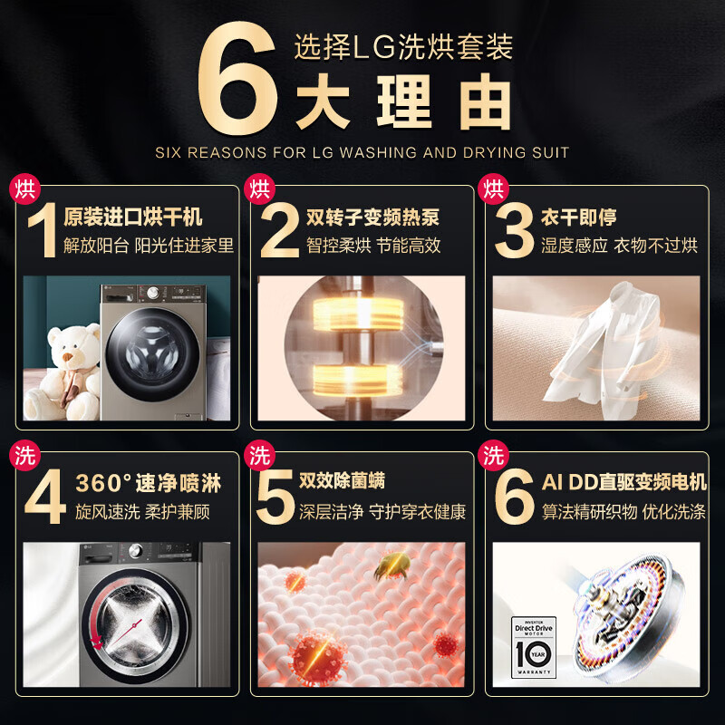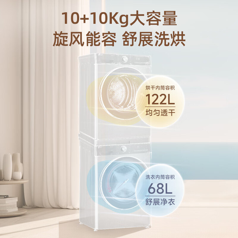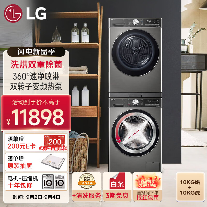 LG小旋风系列洗烘套装 10kg滚筒洗衣机全自动+10kg双转子变频热泵烘干机 FCW10Y4PA+RH10V9PV2WR 银价格:11898.00元!