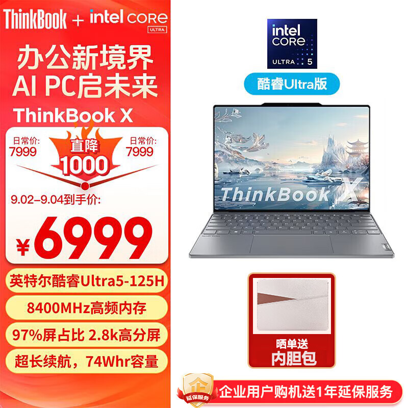 ThinkPad联想笔记本电脑ThinkBook X 2024 英特尔酷睿Ultra5 125H 13.5英寸 16G 1T 2.8K AI高刷屏办公价格:6999.00元!