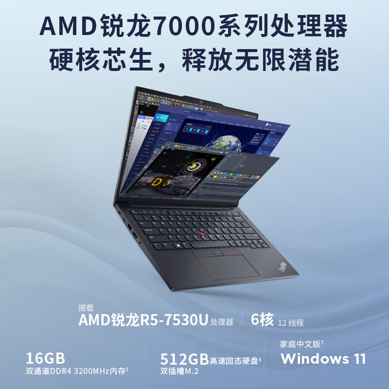 ThinkPad 联想 E14 2023锐龙版 14英寸 商务办公轻薄笔记本电脑 R5-7530U 16G 1T 2.2K 0QCD价格:5149.00元!