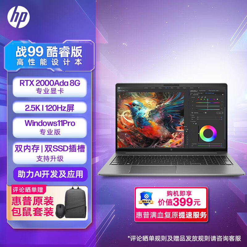 惠普(HP)战99 15.6英寸高性能办公笔记本AI电脑设计师工作站 i9-13900H 64G4T RTX2000Ada2.5K屏Winpro价格:23999.00元!