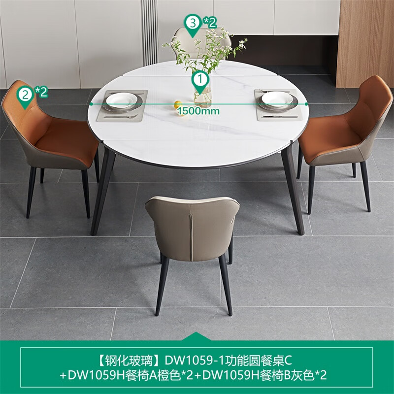 全友家居?现代简约钢化玻璃折叠餐桌椅组合可伸缩家用桌子饭桌DW1059价格:4284.29元!