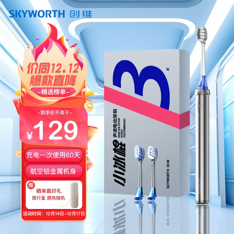 创维小冰棍电动牙刷 成人声波震动电动牙刷 情侣款送男友/送女友 冰川银BG31价格:129.00元!