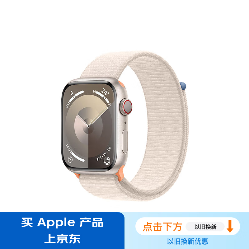 Apple/苹果 Watch Series 9 智能手表GPS+蜂窝款45毫米星光色铝金属表壳星光色回环式表带 MRP43CH/A价格:3999.00元!