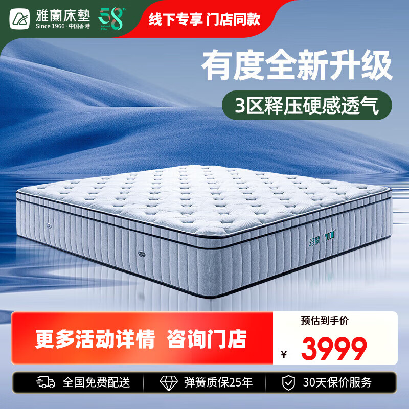 1、相信雅兰的品质,之前买过一张有度,家人说好睡,这次直接全部换成有度了。