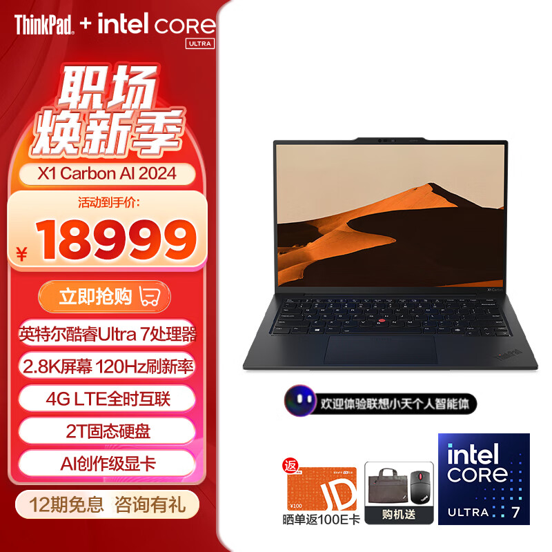 ThinkPad X1 Carbon AI 2024 全新英特尔酷睿Ultra 14英寸全互联商务办公旗舰笔记本电脑 Ultra7 32GB 2TB Win11专业版价格:18969.00元!