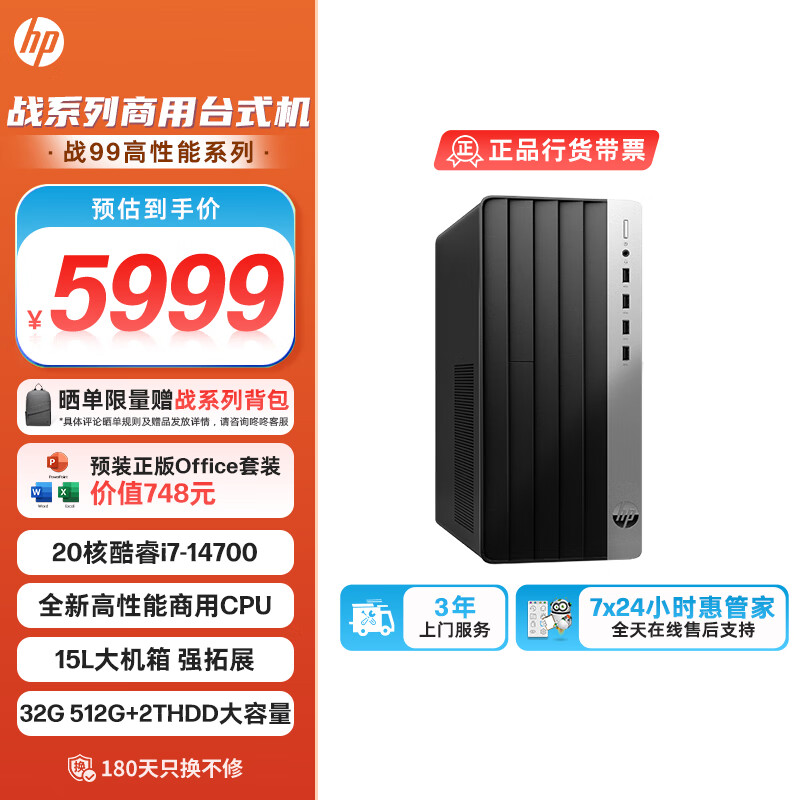 惠普(HP)战99 台式电脑主机(酷睿14代i7-14700 32G 512G+2T)20核商用高性能办公学习价格:5999.00元!