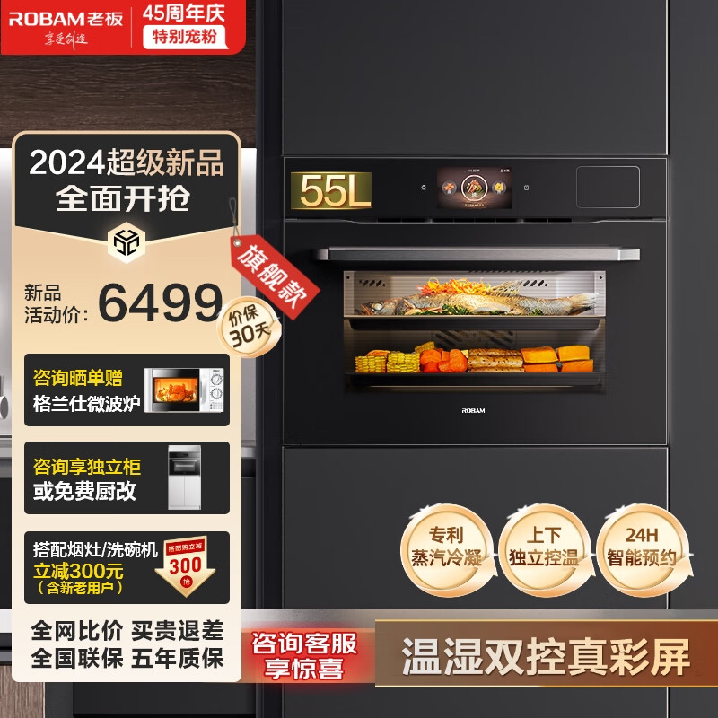 老板(Robam)CQ9068A蒸烤箱一体机嵌入式TFT彩屏EXP专业控温蒸烤炸炖55L搪瓷家用蒸箱烤箱自清洁保温价格:6499.00元!