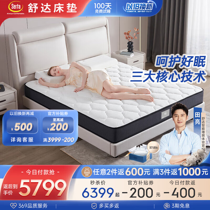 舒达(serta)三大核心技术床垫 偏硬支撑 厚23cm 致妙床垫1.8米*2米 京配价格:6399.00元!