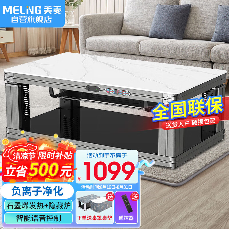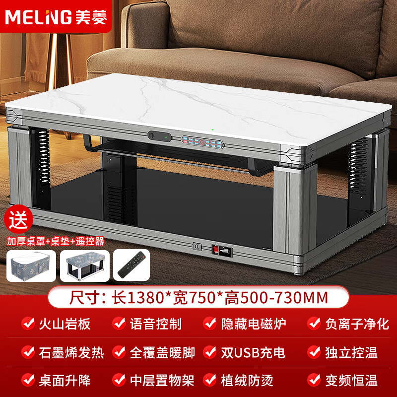 美菱电暖桌1.38米长方形取暖桌家用升降烤火茶几负离子烤火桌多功能电烤桌餐桌两用电暖炉MDN-128GD2E价格:2299.00元!