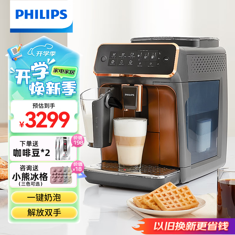 飞利浦(PHILIPS)云朵咖啡机3系EP3146/72家用/办公室意式浓缩萃取全自动研磨一体机价格:3299.00元!