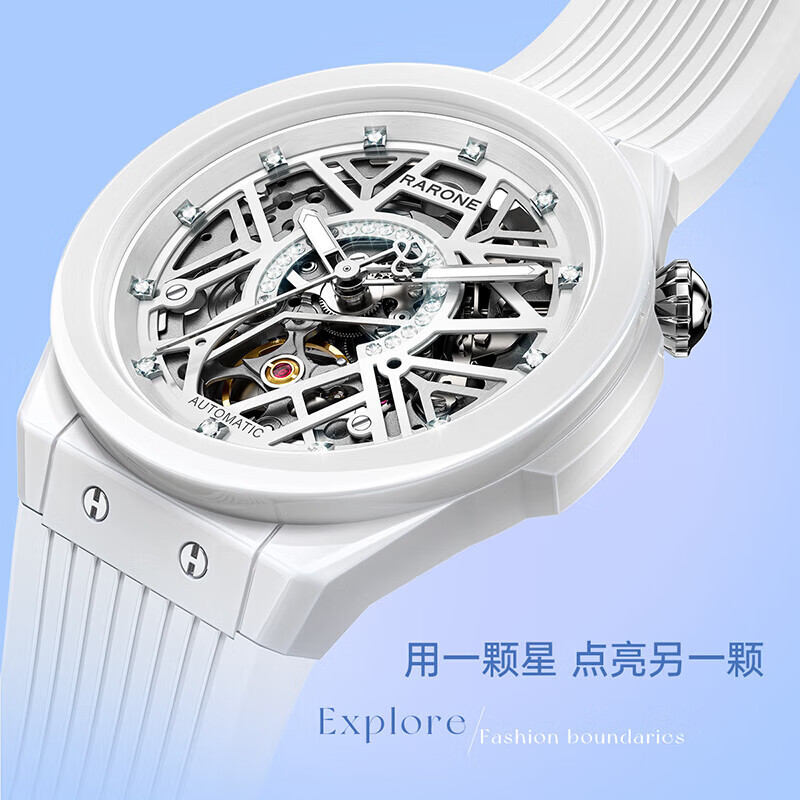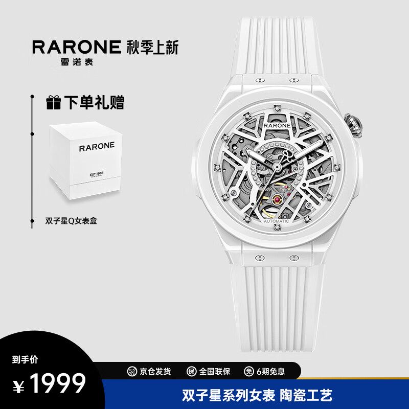 雷诺(RARONE)解构派双子星Q女士机械手表钢带腕表白陶瓷送女友礼物价格:1999.00元!