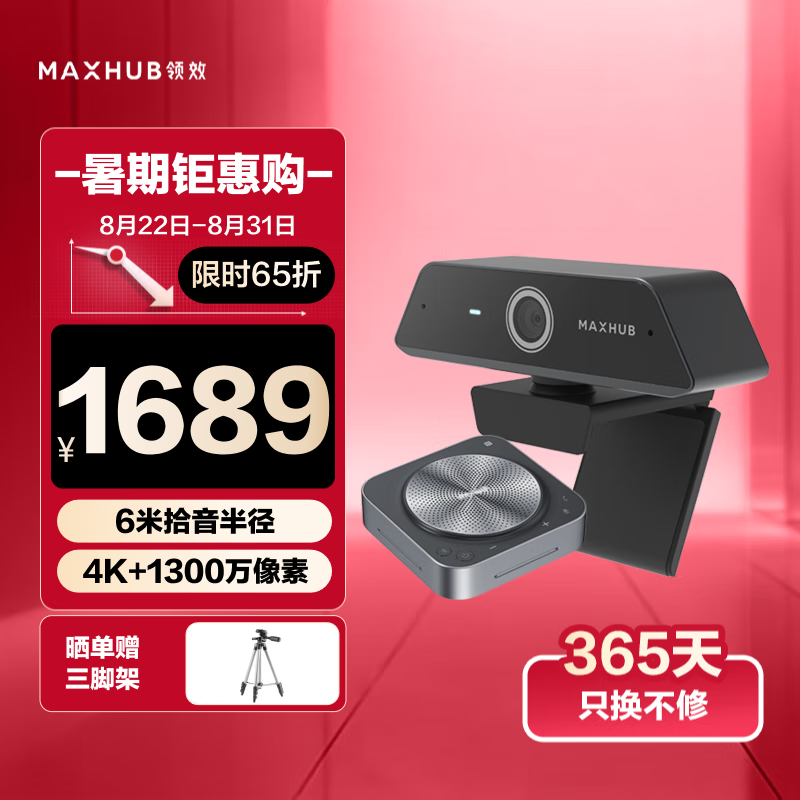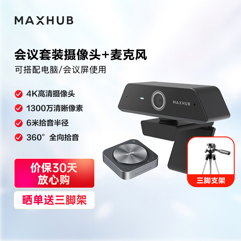 MAXHUB视频会议设备全套装系统6米拾音半径全向麦克风+1300万高清4K摄像头快速对焦 会议室解决方案价格:1689.00元!
