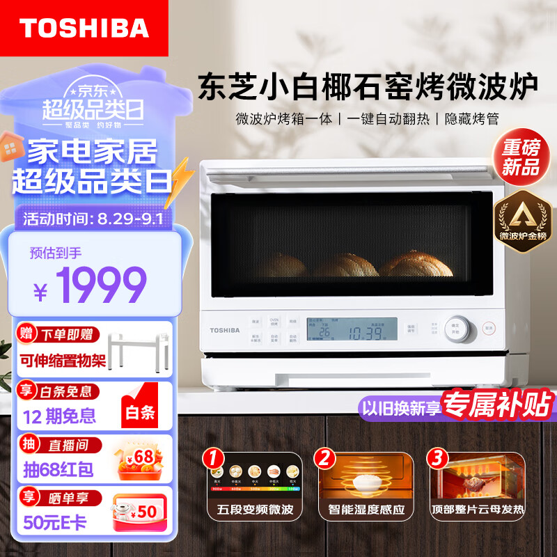 东芝(TOSHIBA)ER-YR2210CNW微烤一体机东芝小白椰微波炉石窑烤箱厨房小型家用多功能智能翻热隐藏烤管白色20L价格:1999.00元!