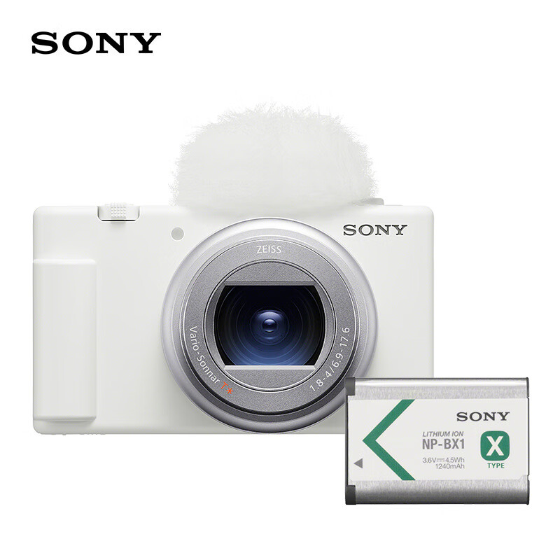 索尼(SONY)ZV-1 II 二代数码相机 Vlog相机/4K视频/超广角/大光圈 白色+NP-BX1充电电池套装价格:5678.00元!