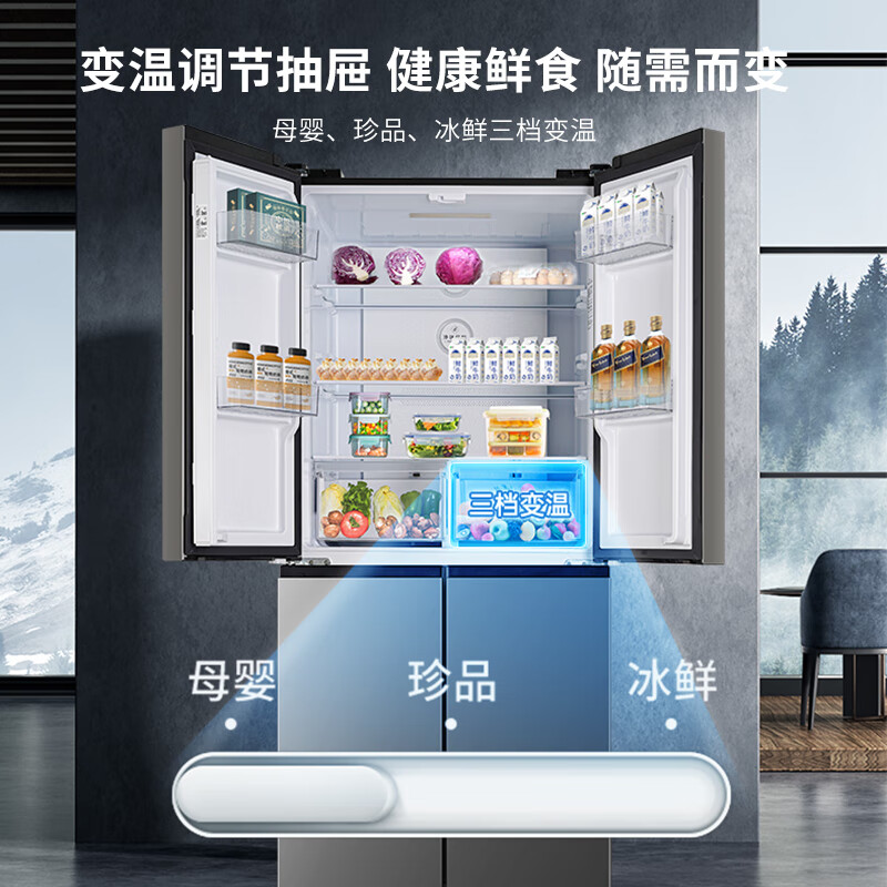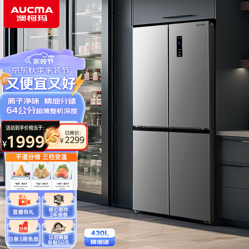 澳柯玛(AUCMA)430升四开门银河灰 一级变频 超薄嵌入双循环保鲜 智能无霜电冰箱 以旧换新 银河系列 BCD-430WPNE价格:2099.00元!