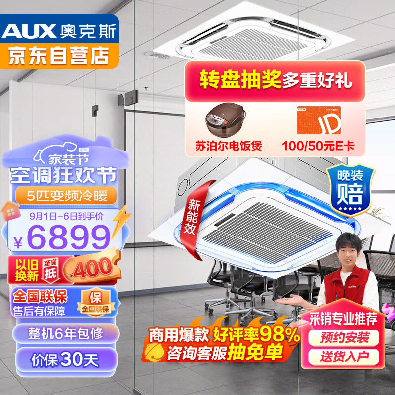 奥克斯(AUX)中央空调 天花机5匹变频冷暖吸顶空调嵌入式吊顶空调商用天井机380V KFR120QW/BPR3YDS(B3)-G 京派价格:6899.00元!