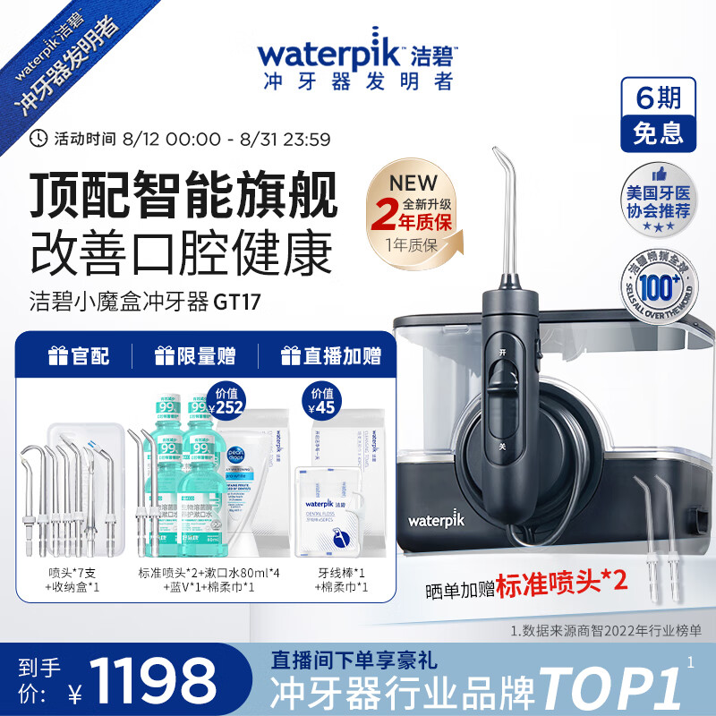 洁碧(Waterpik)冲牙器台式电动洗牙器水牙线洁牙器家用立式预防牙结石小魔盒 GT17-26价格:1468.00元!