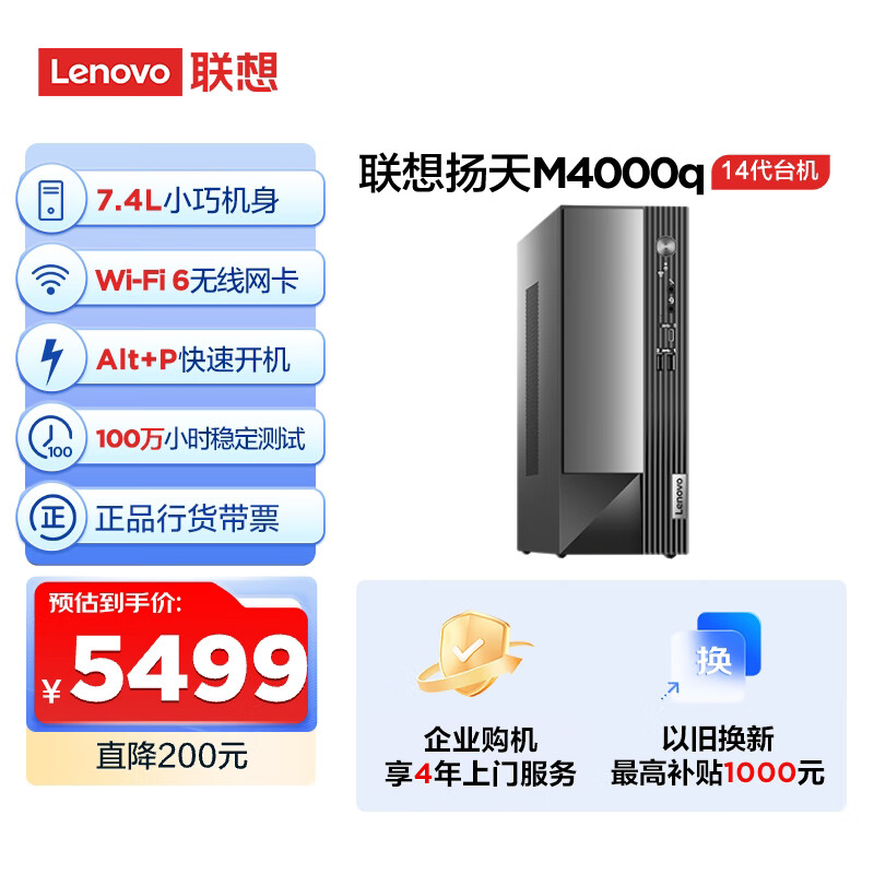 联想(Lenovo)扬天M4000q 2024款 商用办公台式电脑主机(酷睿14代i7-14700 16G 1TB SSD)单主机价格:5499.00元!