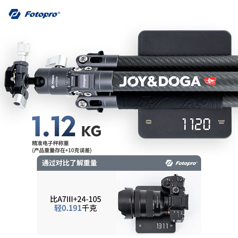 富图宝(Fotopro)飞行一号42QR&joy联名款 扳扣设计 双全景云台 碳纤维相机微单拍摄三脚架 原碳灰价格:899.00元!