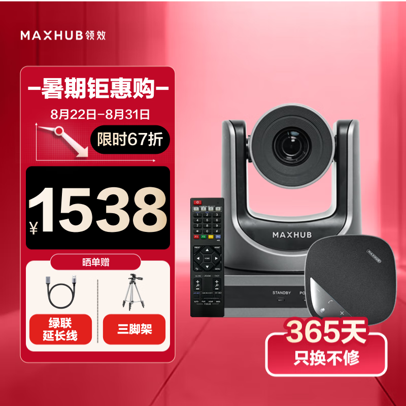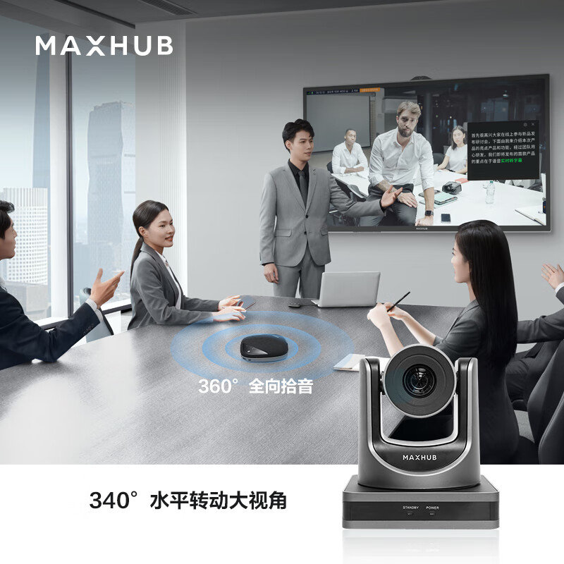 MAXHUB视频会议设备全套系统套装10倍光学变焦高清云台摄像头+全向麦克风4米拾音 会议室解决方案10-20㎡价格:1538.00元!
