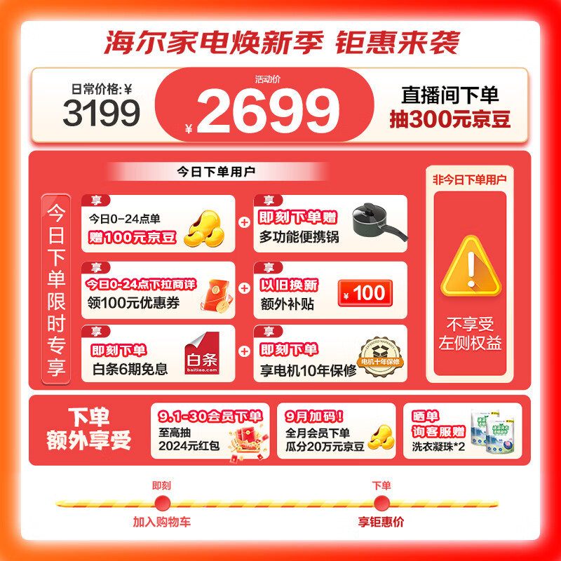 海尔(Haier)云溪波轮洗衣机全自动家用 10公斤 变频一级能效 精华洗 双动力防缠绕 以旧换新ES100B37Mate6价格:2899.00元!