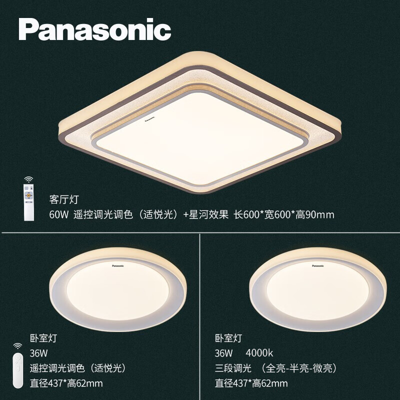 想知道松下吸顶灯外观我比较的喜欢,质量特别的好,松下这款组合灯设计新颖,客厅长款,卧室圆形,带遥控非常高雅大气,亮度也好