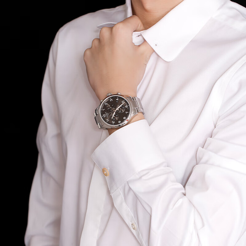2、给老爸买的手表,他戴着挺好看的,喜欢的不得了。这一款不那么正式,可以适合日常生活佩戴使用,没有很突兀,趁着双十一活动,还送了杯子和耳机。