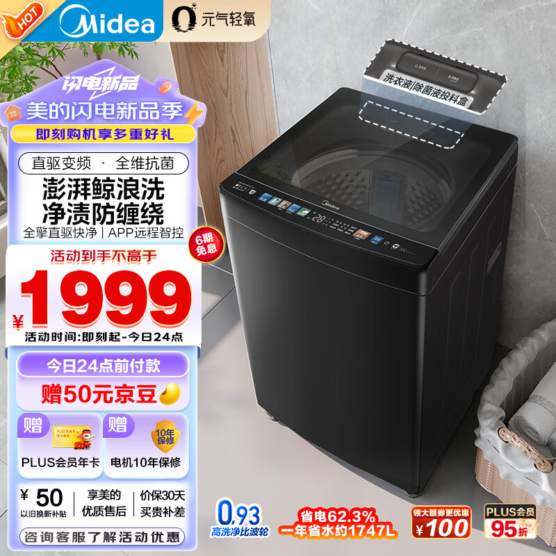 美的(Midea)波轮洗衣机全自动家用 MB100AIR3DPLUS 10公斤 元气轻氧防缠绕 直驱变频 银离子活性除菌 健康除螨价格:1999.00元!