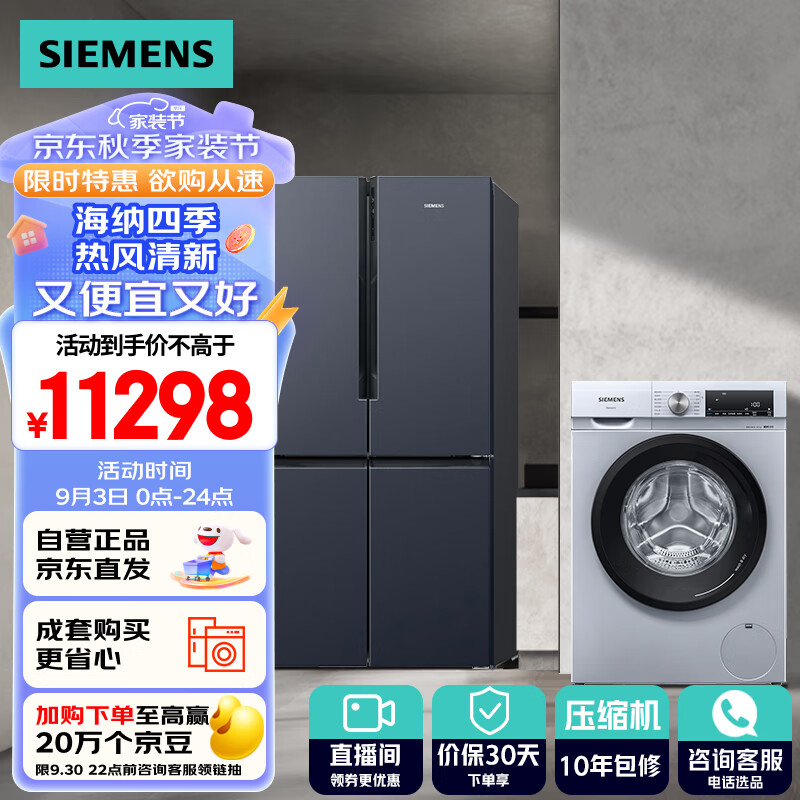 西门子(SIEMENS)605升大容量+10KG洗烘一体 变频冰洗套装K56L56CMEC+WN54A1X42W价格:11298.00元!