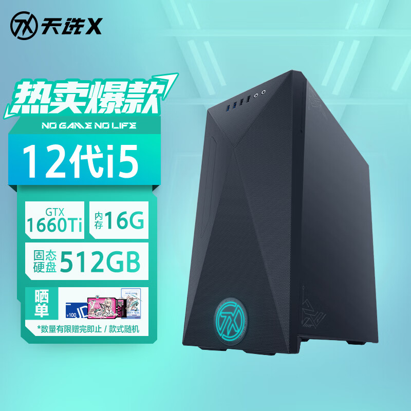 华硕天选X 2022电竞游戏台式机电脑主机(i5-12400F 16G 512GSSD GTX1660Ti 6G独显 wifi)价格:4499.00元!