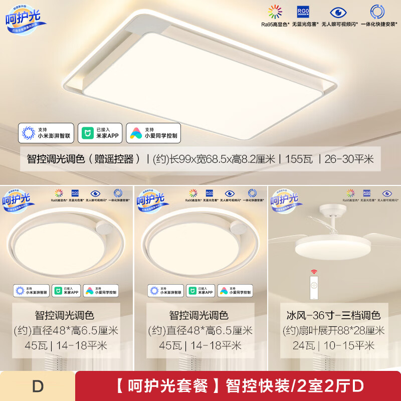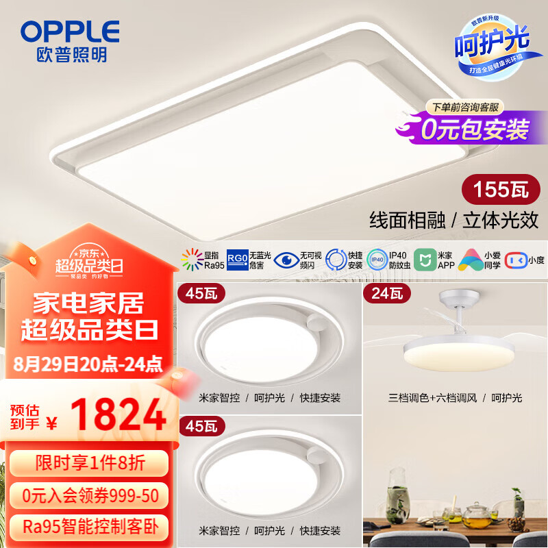 欧普(OPPLE)吸顶灯客厅大灯智能LED照明简约现代奶油风灯具灯饰套餐4呵护光价格:2280.00元!