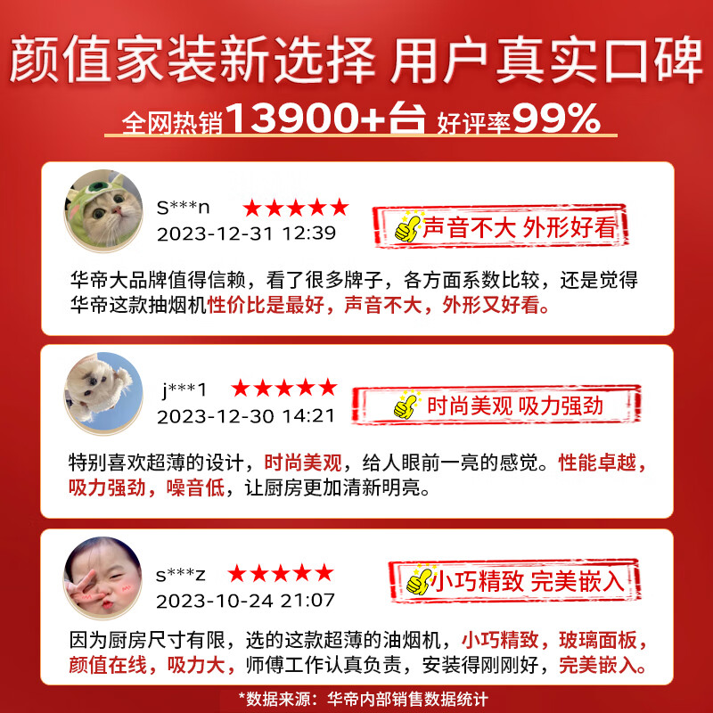 3、我就喜欢华帝老品牌值得信赖,不止外观好看,功能也强大,宝贝收到了,很惊喜?,设计合理,时尚大方,继续关注,以后会回购的???