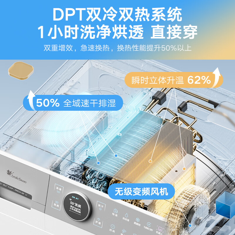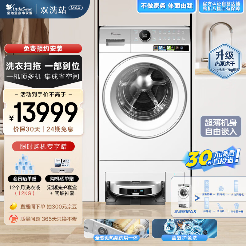 小天鹅(LittleSwan)【双洗站MAX月辉银】12KG滚筒洗衣机全自动 扫拖热泵 洗烘一体 不做家务体面由我 TDH120RMS97IL-S价格:13999.00元!