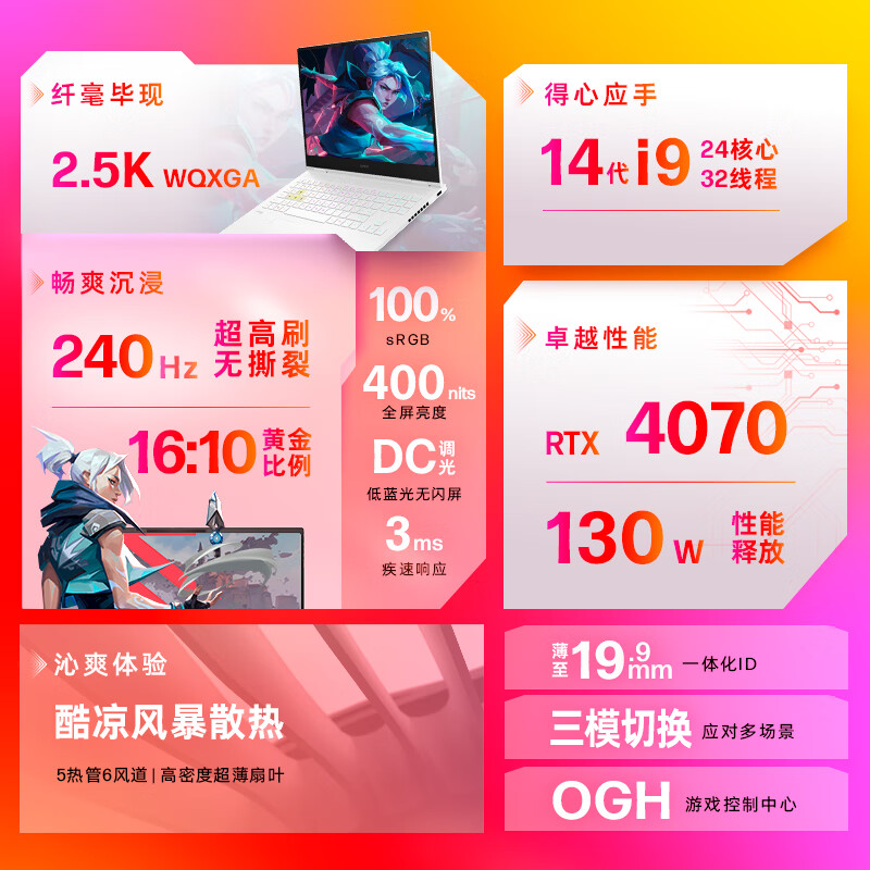 4、白色颜值超好看,重量控制很好??性能强大,金属外壳质感十足!4060和i9完美组合!