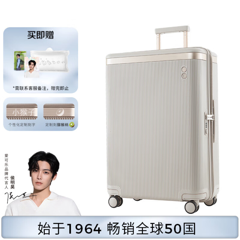 爱可乐(Echolac)明星同款大容量行李箱出国旅行箱王朝防刮拉杆箱奶茶灰24吋PC142价格:1439.00元!