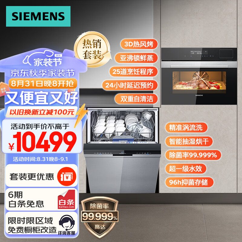 西门子(SIEMENS)洗嵌套装 14套嵌入式家用洗碗机 +嵌入式蒸烤一体机组合套装 SJ43HS00KC+CS389ABS0W价格:10498.00元!