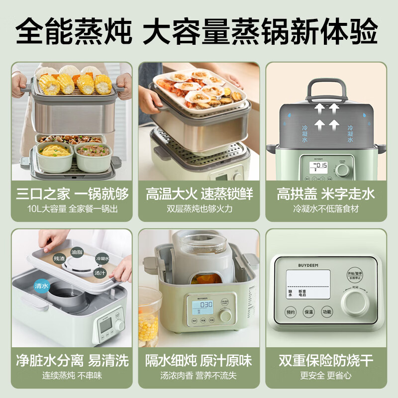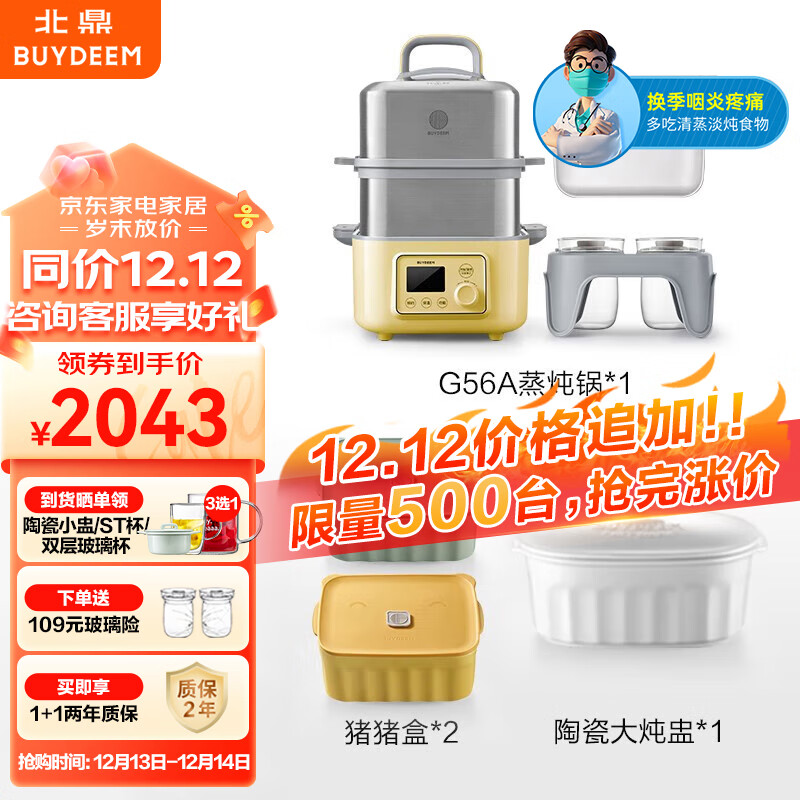 北鼎(Buydeem)电蒸锅 家用一体多功能蒸炖锅 全家福(小鹅黄G56A+猪猪盒*2+陶瓷大炖盅)价格:2271.00元!