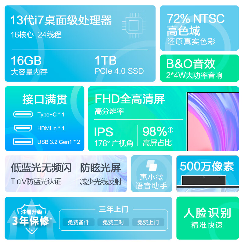 1、外观时尚,节约大气!??这是2023年的新款惠普一体电脑,采用了桌面级的处理器:i5-13400T和1TB的大固态硬盘,运行速到很快,非常好用!