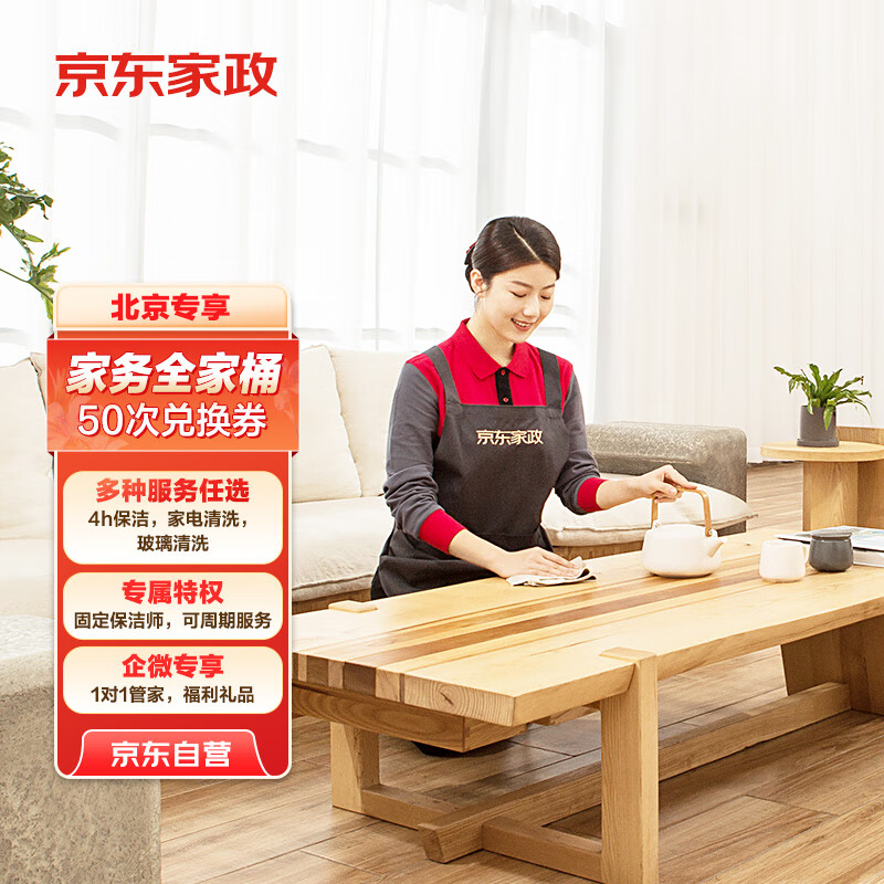 京东家政 4小时50次家务全家桶电子兑换券 家政保洁服务上门服务 限北京使用价格:11999.00元!