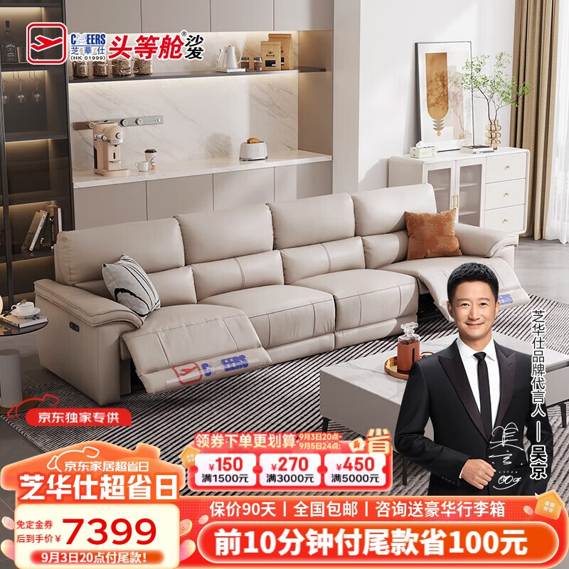 芝华仕(CHEERS)头等舱零靠墙真皮沙发功能家用芝华士客厅家具30196 白四A价格:7949.00元!