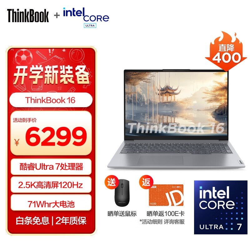 ThinkPad 联想ThinkBook 14/16 2024全新英特尔酷睿Ultra处理器 学生办公轻薄笔记本电脑 120Hz刷新率 16英寸 Ultra7 16G 1T 73CD价格:6299.00元!