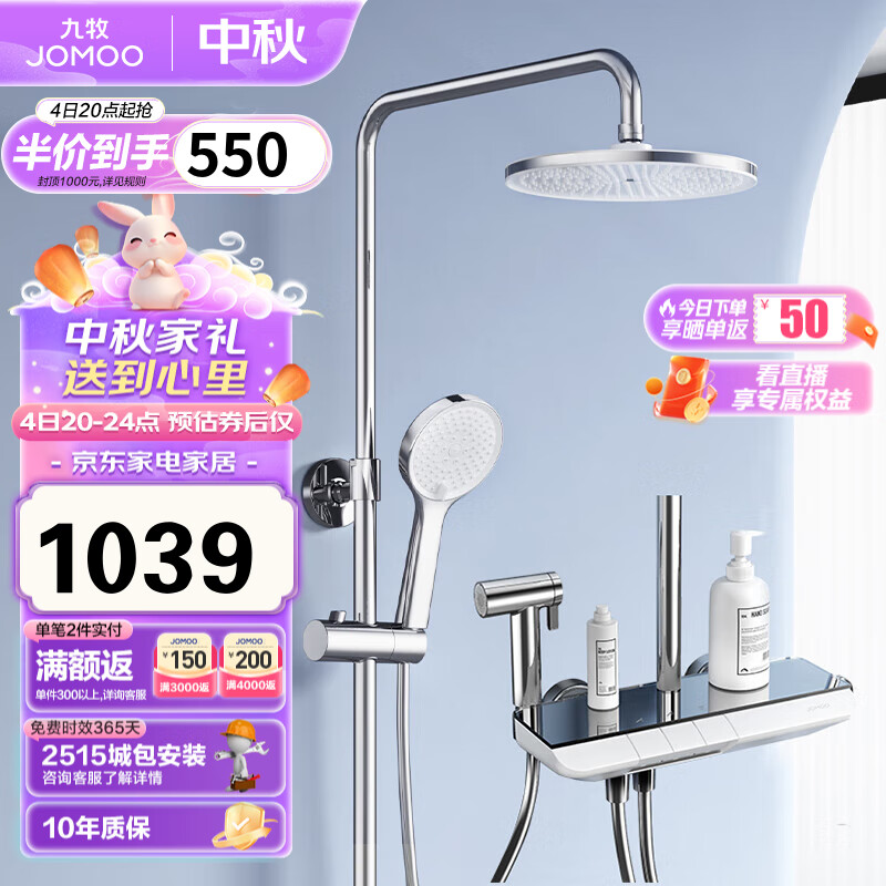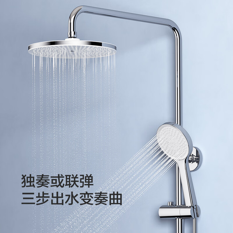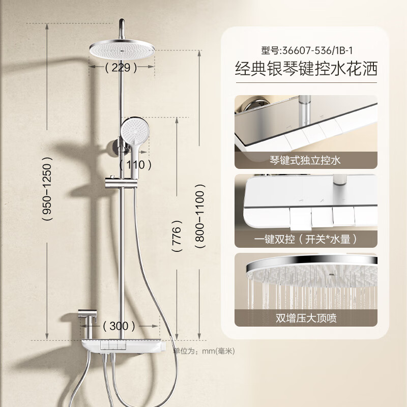 九牧JOMOO花洒全套琴雨钢琴按键升级款双增压顶喷置物36607-536/1B-1价格:1299.00元!