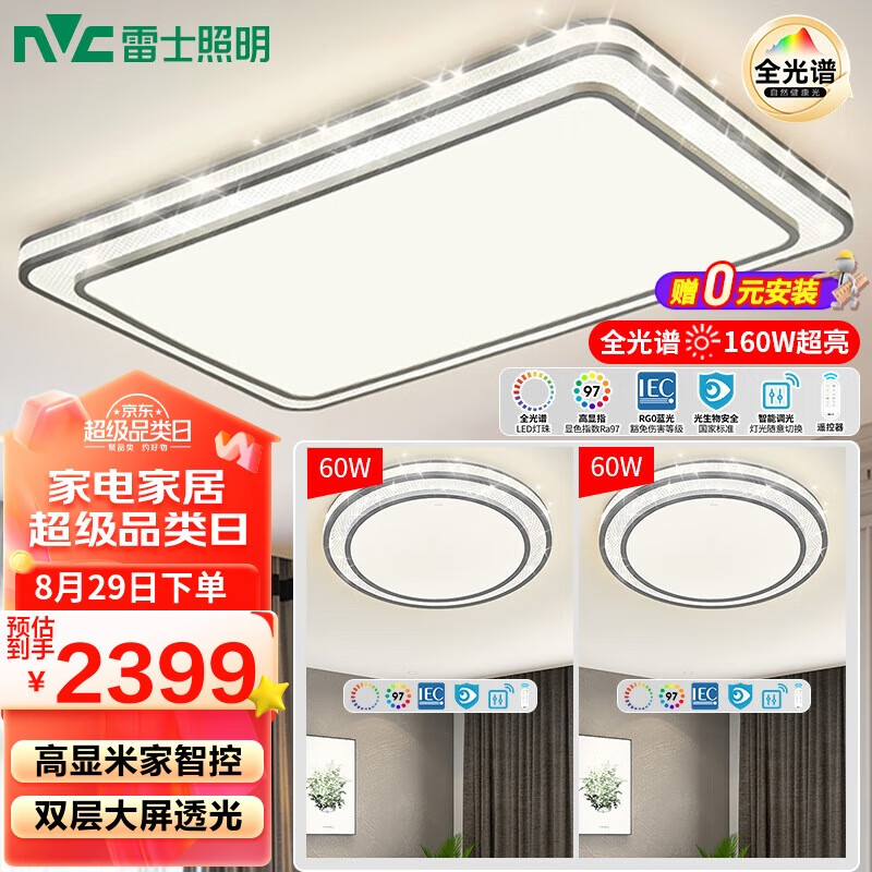 雷士(NVC)led吸顶灯轻奢风大尺寸客厅灯大瓦数高亮米家智能护眼晶宏D舒适光价格:2998.00元!